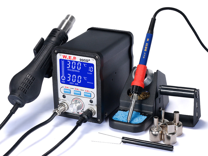 La estación soldadora de retrabajo SMD WEP-995D+ adopta una bomba de aire con un flujo de aire de 120L/min y generalmente va acompañado de diámetro de boquilla de gran diámetro para desoldar puntos de soldadura relativamente grandes o los componentes IC grandes.
