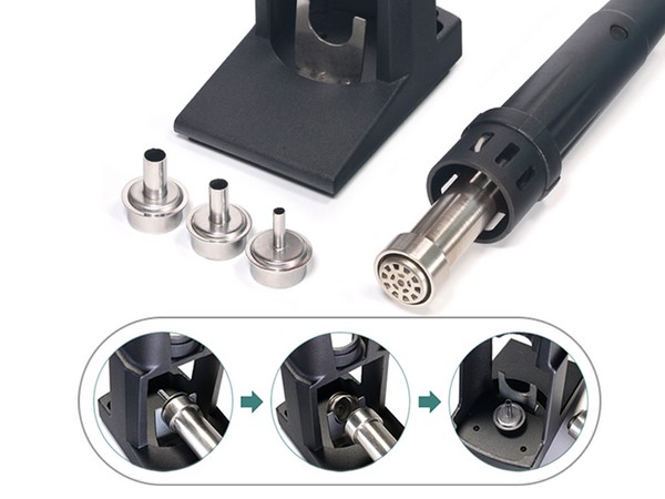 La estación de soldadura también se adapta a aplicaciones en las que se necesitan diferentes volúmenes de aire y requerimientos térmicos.
