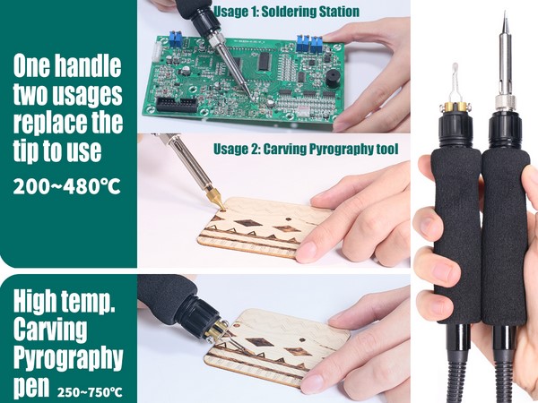 La estación de soldadura para pirograbado en madera Yihua 939-II/939D-II está diseñada con un indicador ajustable e inteligente para mostrar el estado de trabajo de una manera en tiempo real. Un set completo de consejos está disponible para lanzar o expandir su creatividad