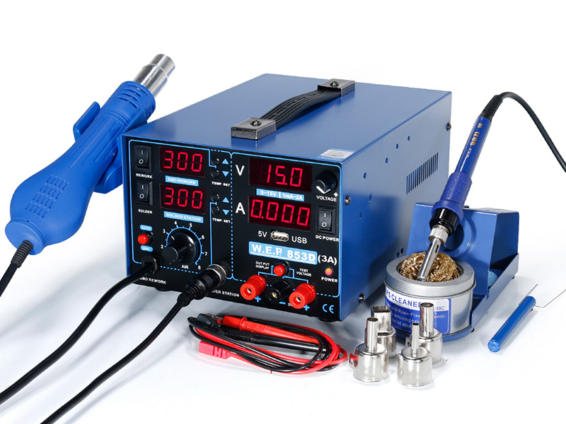 La estación soldadora WEP-853D está equipado con un puerto de USB de 5V con equipos exteriores como luces USB o incluso para dispositivos de fuente de alimentación como teléfonos inteligentes y tabletas.