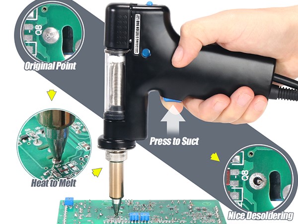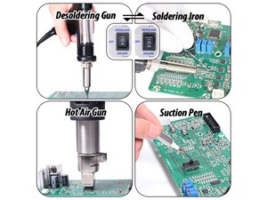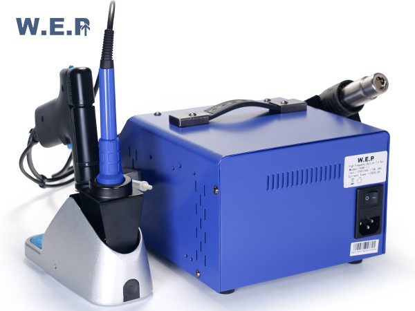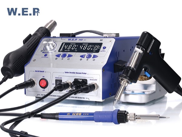 La estación de retrabajo, WEP-948-II consta de una pistola de aire caliente, soldador de vacío, soldador eléctrico y lápiz de absorción de humo, y tiene un amplio campo de aplicaciones. Función de intercambio inteligente permite una transformación sencilla entre soldador eléctrico y soldador de vacío.