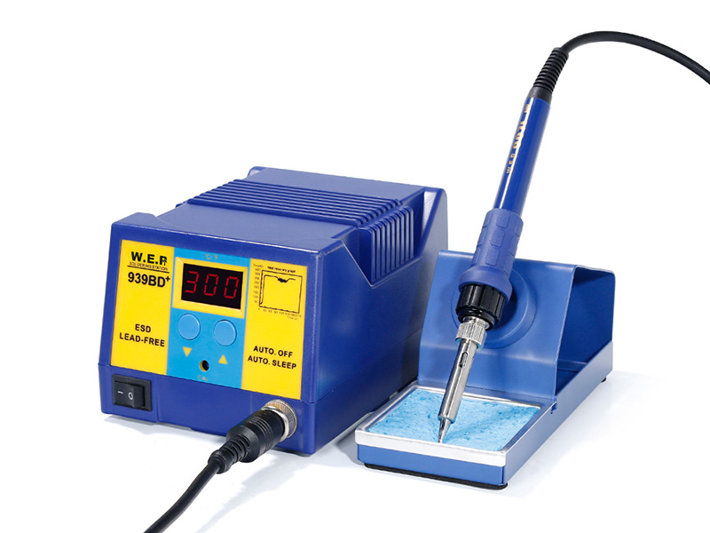 La estación de soldadura SMD WEP-939BD+ está equipada con un modo de suspensión. El soldar se apagará automáticamente una vez que se vuelve a poner en el titular y la temperatura se reducirá hasta 200℃. La punta de soldador y calentador obtiene una función de detección de estado fallado y el sistema se apagará automáticamente en caso de disfunción o si exceda el máximo tiempo de suspensión.