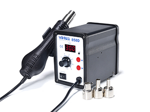 La estación de soldadura y desoldadura de aire caliente YIHUA-858D o la YIHUA-858 se encuentran generalmente en escuelas, laboratorios, líneas de producción de electrónica, en la industria de la reparación de teléfonos móviles, en los departamentos de mantenimiento de electrodomésticos, entre otros. Es ideal para soldar componentes SMD, circuitos integrados multipin y componentes de circuitos impresos.