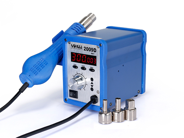 La estación de soldadura y desoldadura de aire caliente YIHUA-2009D se utiliza para la soldadura de componentes SMD, CI multi pin y componentes de circuitos impresos. Se utiliza ampliamente en escuelas, laboratorios, líneas de producción de electrónicos, en industrias de reparación de teléfonos móviles, en departamentos de mantenimiento de electrodomésticos, etc.