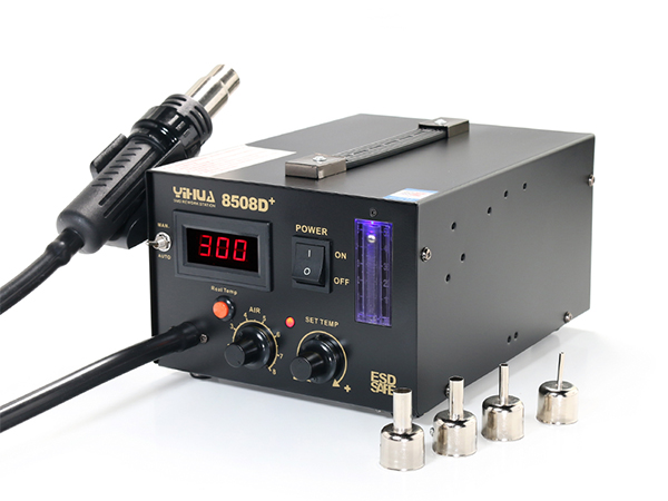 La estación de soldadura y desoldadura de aire caliente YIHUA-8508D+ está desarrollada para desoldar diferentes tipos de componentes tales como SOIC, CHIP, QFP, PLCC, BGA, etc. Es particularmente adecuado para desoldar componentes SMD en áreas pequeñas con una gran precisión.