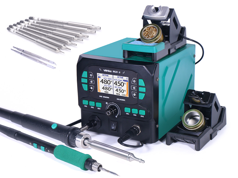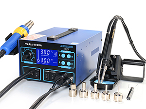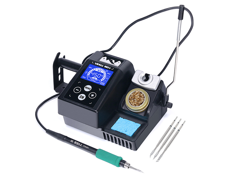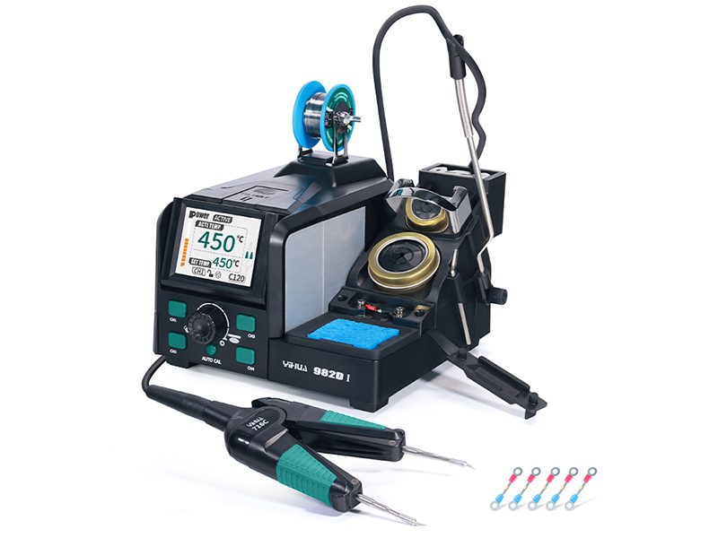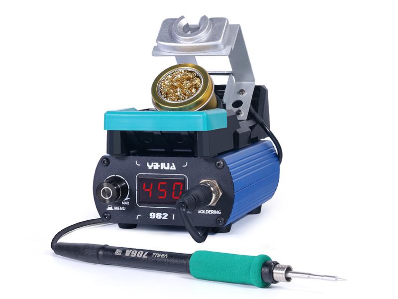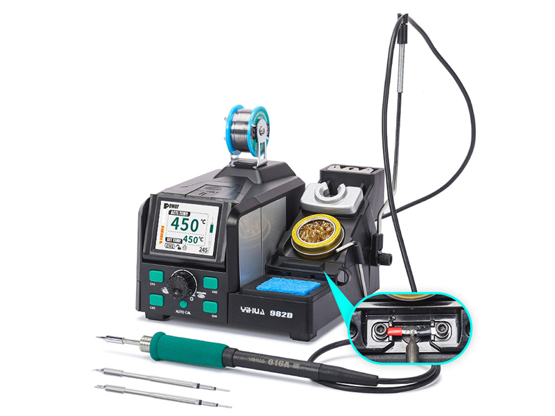 Estación de soldadura 982La estación de soldadura de calentamiento rápido 982 de YIHUA viene con soldador C210, que se utiliza para soldadura y retrabajo de componentes electrónicos.