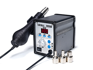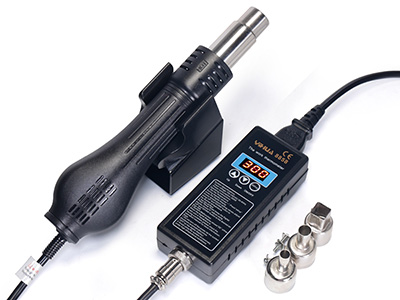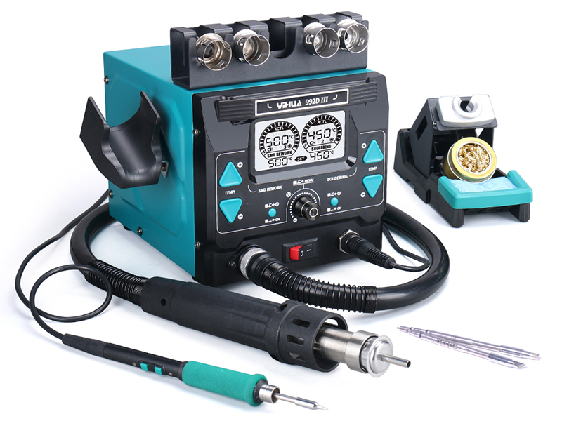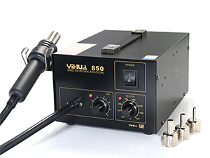 Tipo bomba de diafragmaLa estación de soldadura y desoldadura de aire caliente YIHUA-850 tiene una pantalla LED para mostrar y controlar la temperatura de la pistola de aire.