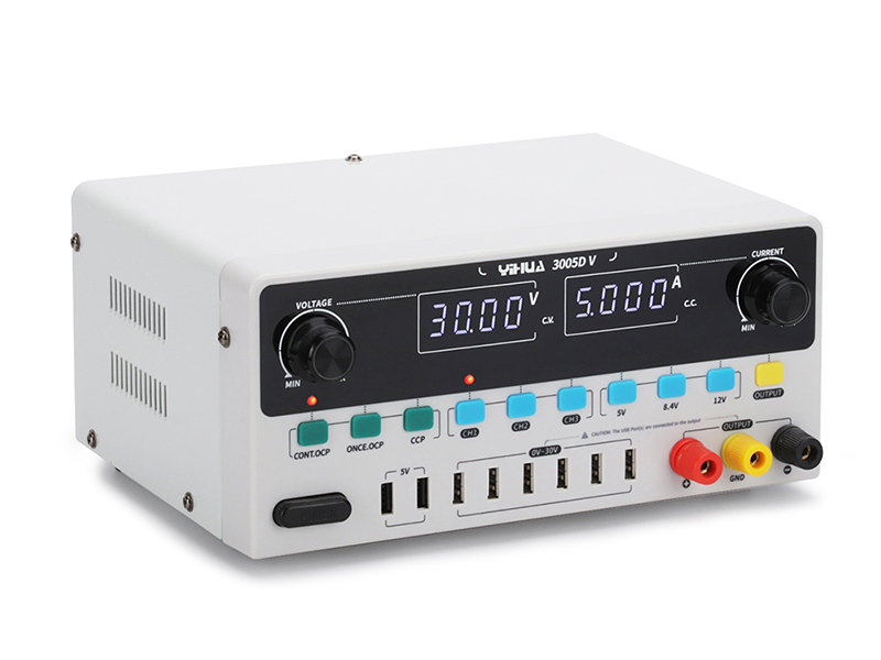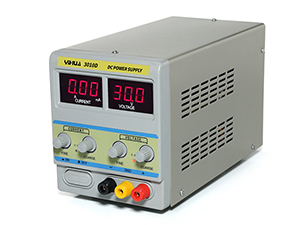 Fuente de alimentación DC 30VLa fuente de alimentación DC YIHUA-3010D puede suministrar una simple y precisa salida de energía DC ya que ajusta continuamente los valores de la tensión y la corriente de salida dentro de los parámetros nominales.